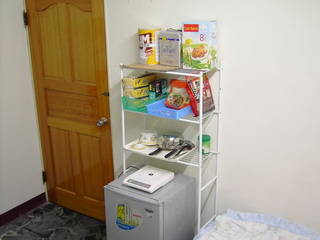 獨立的小冰箱是我當初挑上這間房的一大原因,有了冰箱就能方便的保存食材,再透過電磁爐和小電鍋,就可以很容易的在房間內解決吃的問題,除了方便控制飲食內容和營養成分之外,也相當省錢,即使電費加上去也划算。 從此之後我再也不用為了吃頓飯奔波勞累,煩惱菜單和花費及營養成分,一切都在房間內就可以自己搞定,除非食物吃完或是需要進實驗室,否則我根本不必離開房間……………