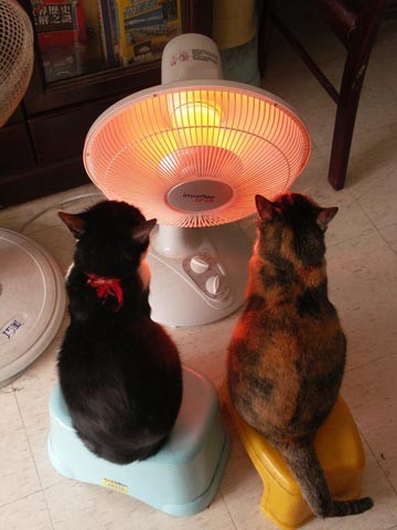 雖然平常水火不容,不過到了冬天,這喵妹二寶就會開始耍寶;寒流+暖爐,仇人也成好朋友。