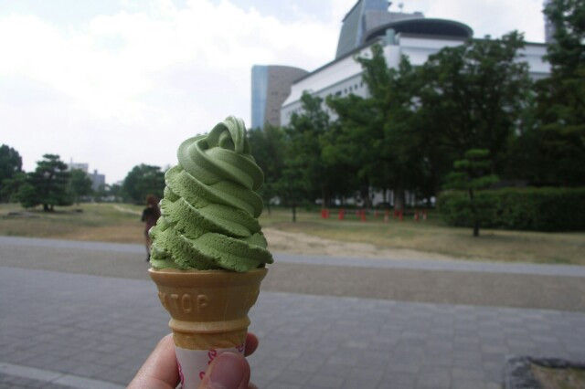 吃飯上,除了道頓堀的北極星蛋包飯之外,我完全沒有預設要吃什麼東西,只要時間差不多了,路邊看到確定有圖文並茂菜單的套餐類的店,我就進去了,有時逛完景點會想買個冰淇淋或喝的,休息一下,也依照這個原則,反正就算漢字念不出來(我也盡量避免點漢字的東西),比手畫腳也能完成點餐的動作;比較意外的一次是逛完大阪城之後,買抹茶冰淇淋時,店員當時是背對著我一邊忙別的一邊我問我要什麼口味,正緊張的時候(抹茶的茶寫著漢字我不會念),突然想起來第一天前往旅館途中,坐過站的站名叫天下茶屋,坐過站之後,我特別研究了這四個字怎麼發音,然後跑去問站員該坐哪台列車,點冰淇淋的時候,那個茶乾脆就照著唸了,不過音調不對,店員沒聽懂,還好旁邊的路人聽懂了,幫我用正確的音調複誦,店員才搞懂我要點的東西,感謝路人。
